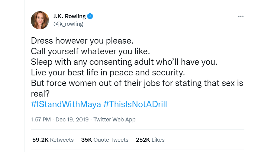 Remember the outrage against J.K. Rowling who stated that biology is real.