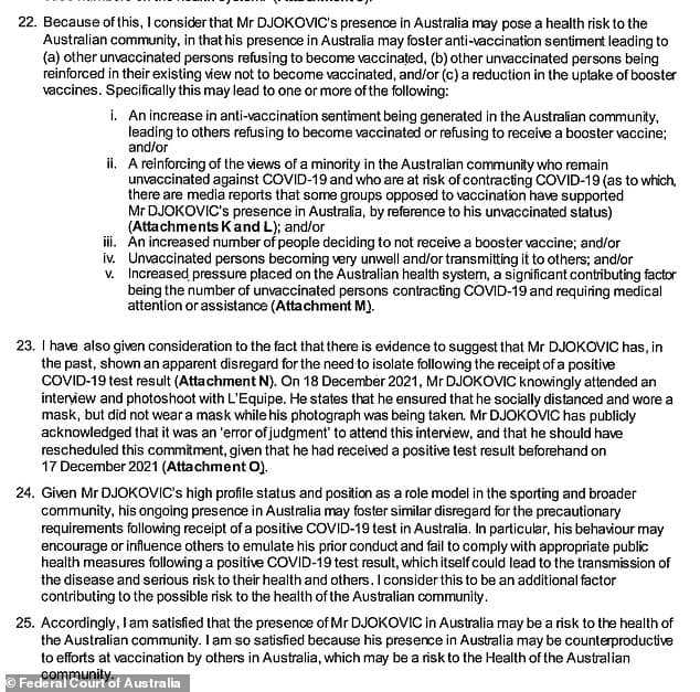 “Our key concern was not whether Mr Djokovic was able to play tennis this week. Our concern is the Federal Government’s view that it did not have to prove that Mr Djokovic would foster views about vaccination that are contrary to the government, but simply that he may foster those sentiments,” said Mr Greg Barns SC, spokesperson for the ALA.